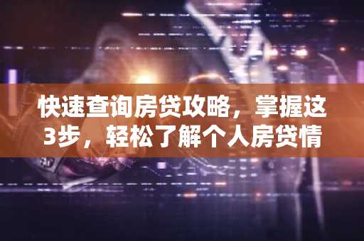 在当今社会,房贷已经成为许多家庭购房的重要途径,了解自己的房贷情况,对于理财和资金规划至关重要,以下是从财经角度出发,为您整理的快速查询房贷的三个步骤,助您轻松掌握个人房贷情况。