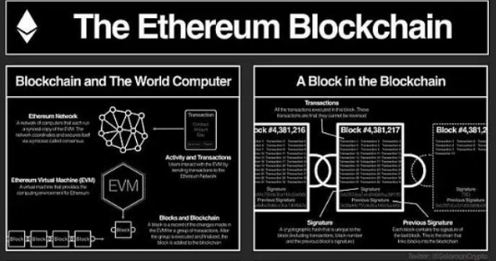 以太坊的区块链由一系列区块组成,每个区块包含一组交易。区块和交易创建背后的亮点是工作量证明(PoW)共识算法。矿工们竞相解决复杂的数学难题,确保网络的完整性并验证交易。这个过程不仅安全,而且能源密集,这导致以太坊过渡到更环保的共识机制,称为以太坊 2.0。