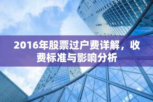 2016年,我国股票市场经历了诸多变革,其中股票过户费作为一项重要的交易成本,引起了投资者的广泛关注,本文将从财经角度,对2016年股票过户费的收费标准、影响因素及其对市场的影响进行分析。