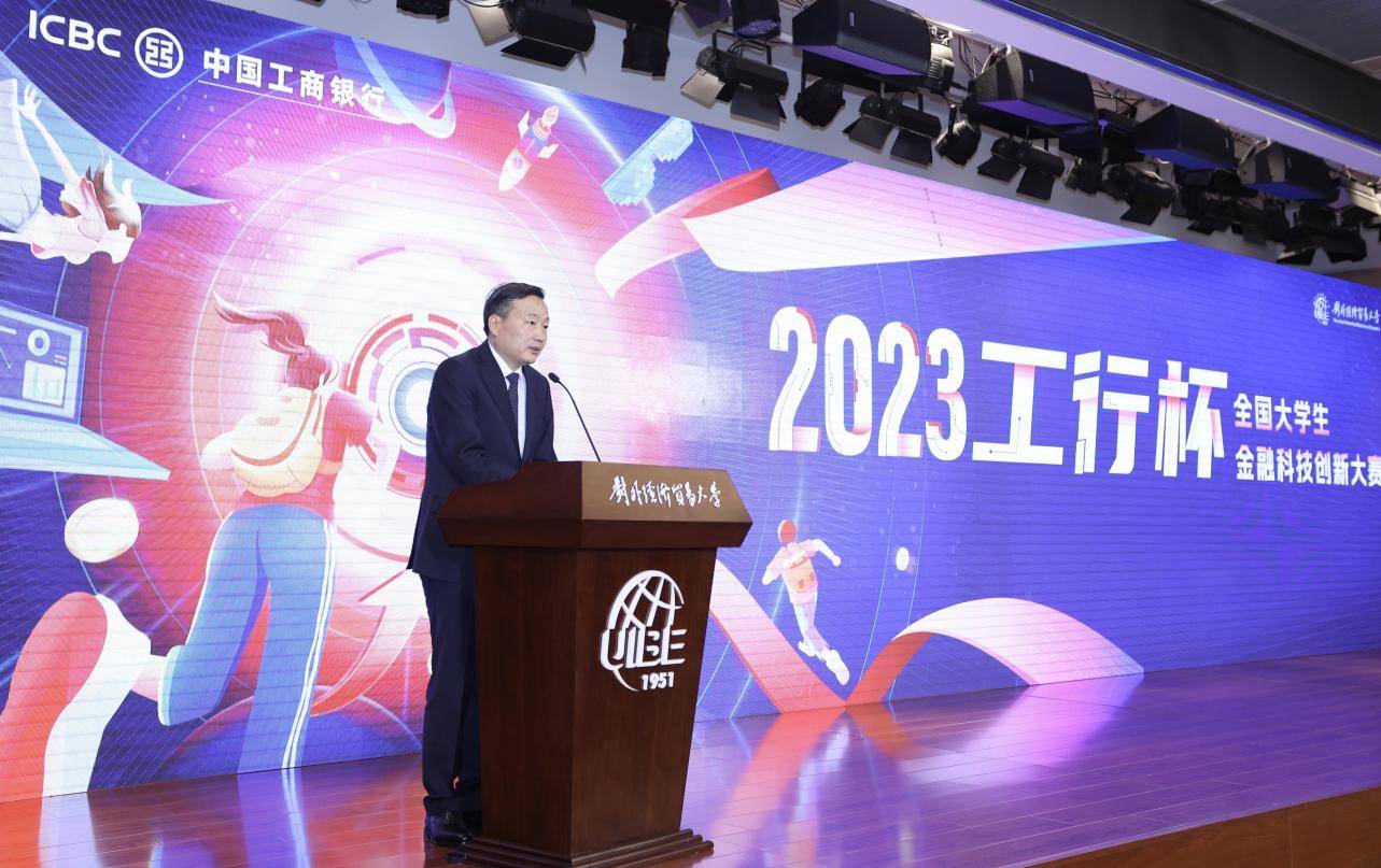 2023年12月9日下午,由**工商银行主办的2023年“工行杯”**大学生金融科技创新大赛总决赛在对外经济贸易大学成功举办。**工商银行党委委员、副行长张文武,对外经济贸易大学**黄宝印出席总决赛并致辞。参赛选手们在总决赛的舞台上展开了精彩比拼,点燃了一个个智慧碰撞和创意闪耀的时刻,让创新光芒尽情绽放。