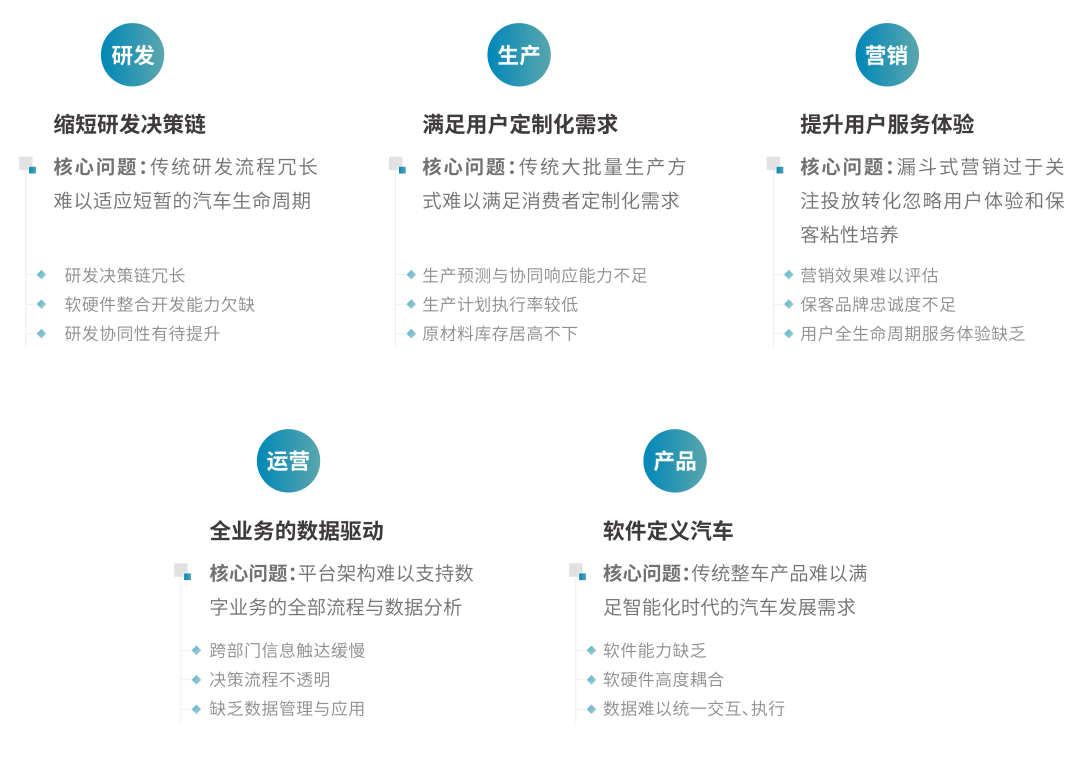 “十四五”时期,加快数字化发展,打造数字经济新优势,正在成为**经济增长新引擎。数字化转型成为企业发展的必由之路。作为全球**的制造业之一,汽车行业的发展在现代国民经济中起着至关重要的作用。伴随着互联网技术的飞速发展和新一代数字技术的涌现,**汽车产业面临着前所未有的全价值链重构。当下,汽车产业数字化转型正进入攻坚期、深水区,转型成功与否,既关乎企业自身的生存与发展,也将决定未来整个产业能否实现高质量发展。