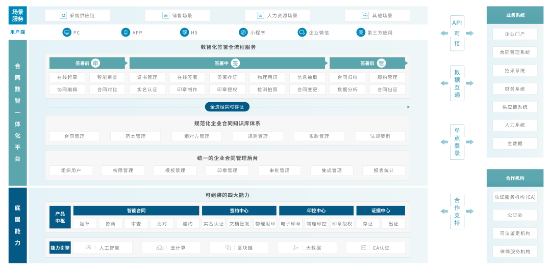 在内部管理(人力、行政、财务等)方面,将电子签章与企业EHR系统或OA系统无缝集成,可实现合同全生命周期管理与内部文件审批管理。据数据测算,应用电子签后,企业签署效率提升90%,存储成本节约90%。