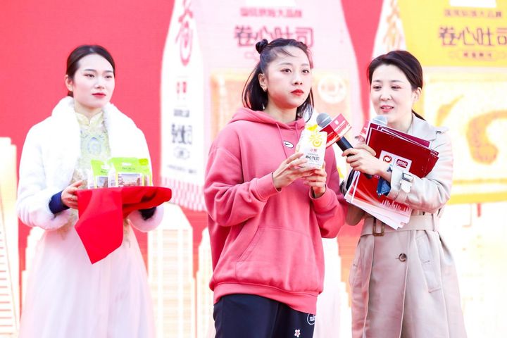 盼盼食品品牌代言人葛曼棋现场试吃卷心吐司