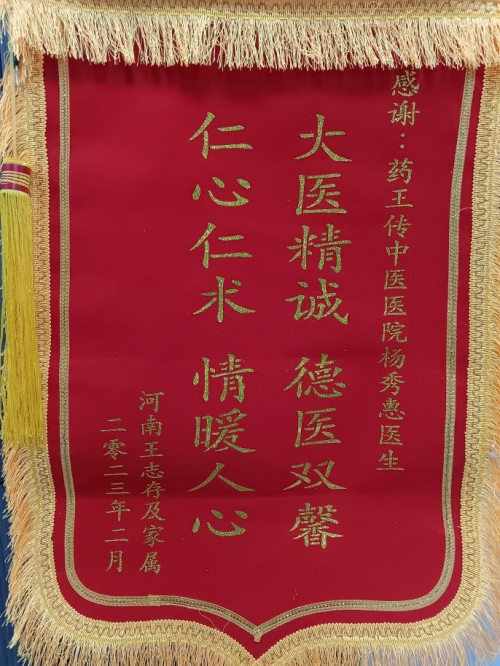 “我走路利索了,生活可以自理,感谢杨医生开的膏方,让我重新站了起来,给了我生活的希望……”63岁的河南的王老先生,在2月份给药王传中医医院的杨秀惠主任送来锦旗,又在半年后再次写信表达自己的感激之情。