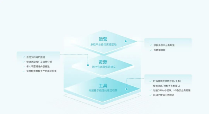 1.CRM会员体系搭建:微信会员卡 公众号(数据融合),形成会员数据系统(数据收集)
