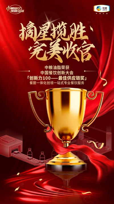 中粮油脂是中粮集团的核心主业之一,作为**油脂行业**者,凭借出色的供应链体系赋能餐企发展,充分彰显了行业**、消费者信赖的央企力量,荣获第九届**餐饮创新大会“创新力100——**供应链奖”。