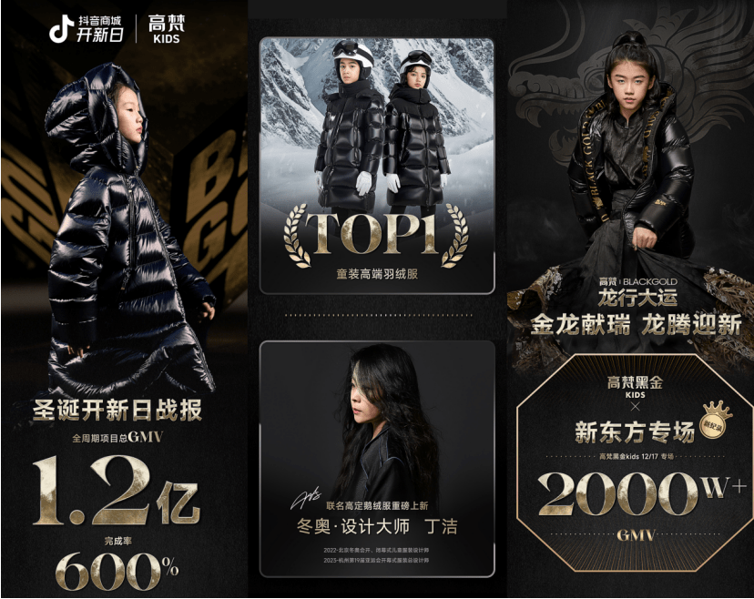 最近高梵KIDS又出圈了,双十二加上“抖音圣诞上新季多品牌开新日”销售了1.3亿,成为抖音童装多品牌开新日的今年以来的**。高梵KIDS提前106天完成全年销售任务,进入12月中旬以来,高梵Kids连续两周排名抖音童装羽绒服**名,而且还是在高梵KIDS连续断货的情况下。高梵KIDS负责人木兰说:“如果货品充足,今年12月高梵童装应该会有更好的业绩表现”。