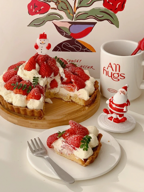 风靡烘焙市场的草莓塔在圣诞季大受欢迎。清甜的当季草莓,像热烈活泼的精灵跳进雪地里,顺滑奶油挤成精致的小花,海绵蛋糕如浮云般的口感,入口如冬日白雪在口中融化,回味奶香与酸甜草莓果香,席卷口腔的每一个角落。