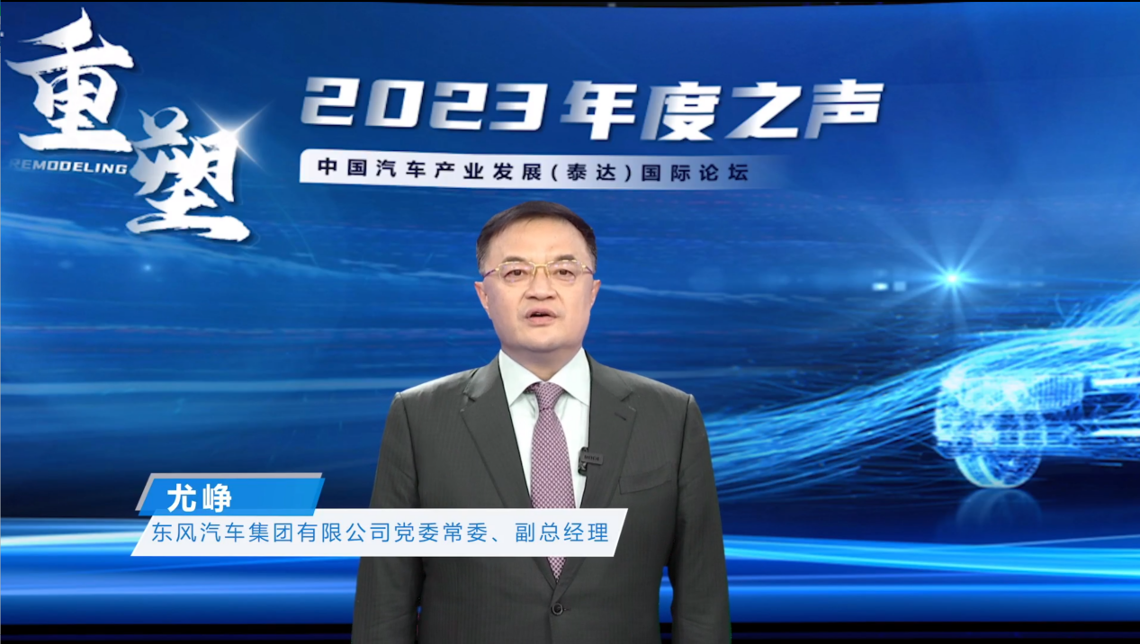 2023年12月22日,泰达汽车论坛的年度收官盛会——**汽车产业发展(泰达)**论坛年度之声在天津成功召开。围绕“重塑”的年度主题,行业机构领导、汽车企业高层、行业专家总结了2023年产业发展,研判未来汽车产业变革趋势,为助力汽车产业高质量发展提供智库支持。作为汽车企业代表,东风汽车集团有限公司(下称东风汽车)副总经理、党委**尤峥作了《正确把握“双碳”目标 坚定推动新能源转型 为绿色低碳发展贡献东风力量》的视频演讲,分享了汽车产业变革新趋势与东风汽车新能源转型发展的新实践。