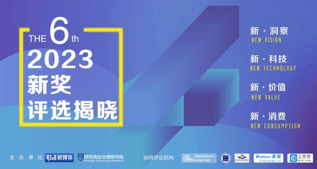 近日,由《财经》新媒体与《财经》商业治理研究院联合举办的第六届“新奖”获奖榜单重磅揭晓。该评选涵盖了新洞察、新科技、新消费、新价值等四个领域, 共计14个奖项。此次评选得到了国资委机械工业经济管理研究院企业社、北京大学电子商务法研究**、**社会科学院大学互联网法治研究**、易观分析、企查查等机构的理论和数据支持。