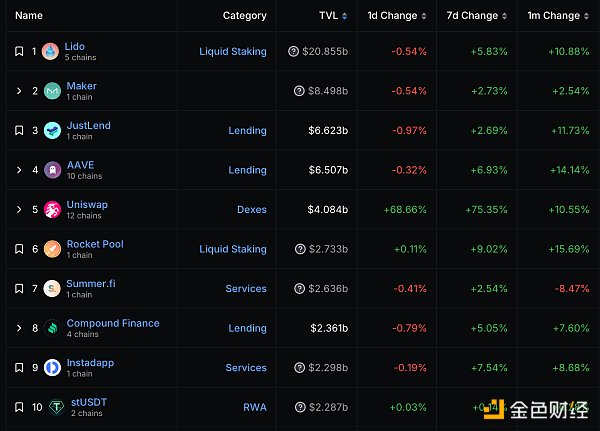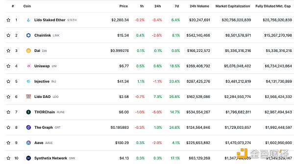 DeFi总市值及前十** 数据来源:coingecko