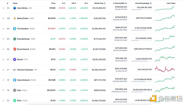 24小时NFT交易量、交易量前十项目 数据来源:Coinmarketcap