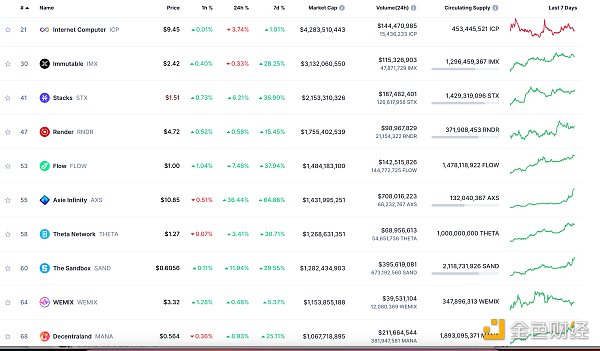 NFT总市值、市值排名前十项目 数据来源:Coinmarketcap