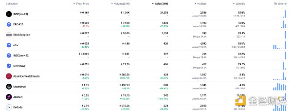 24小时内销售前十的NFT 数据来源:NF**O