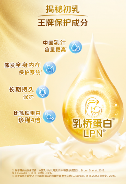 给婴幼儿时期的宝宝选择口粮时要关注保护力成分的添加。乳桥蛋白LPN,它是天然乳源OPN,是健康宝宝体内含量更高的保护蛋白,非常亲和。它非常珍贵,比很火的乳铁蛋白还**4倍。5万公斤牛乳只有1公斤乳桥蛋白,妥妥的“**”成分。乳桥蛋白的结构很特别,像一把保护力钥匙,能激发宝宝自己的保护系统,带来双向保护;对内加强自身保护力,体质好了,还抵御外在伤害,身体更强壮。这么珍贵的营养,榜单中的合生元派星一罐就有6倍含量,达到临床水平高标准。