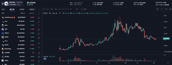 目前dova的价格在0.011左右,**点的价格在0.03