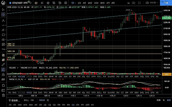 以太坊昨日震荡上行**触及2305一线后再次回落,低位跌至2256一线支撑,恭喜跟上昨日思路的朋友空单获利50点,目前币价在2270附近运行,四小时级别行情再次反弹未破前高,整体呈震荡回落走势,短期受ma14均线压制无法突破,macd空头运行双线死叉向下,行情反弹力度薄弱短期走势偏向空头,日线级别高点逐步**有再次试探ma30均线支撑的需求,破位则会去ma60附近,不跌破2100依旧是多头趋势,思路不变逢低做多为主高空为辅,上方压制2300-2340,下方支撑2250-2200