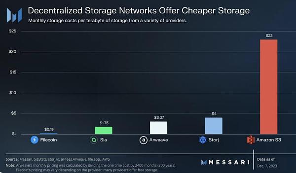 Decentralized Storage:目前的云存储市场拥有 800 亿美元的市场规模,并以每年 25% 的增速持续增长。而尽管去**化存储服务的成本比 Amazon S3 等云服务提供商低 70%,目前去**化存储的市场占比仍不足 1%,去**化存储仍有巨大的市场机会。