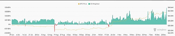 投资者预计圣诞老人会出现反弹,但高融资利率正在引起交易者的恐慌。市场需要降温才能继续上涨。Coinglass衍生品交易数据平台报告称“资金费率正在疯狂。” 预计会有巨大的波动。”