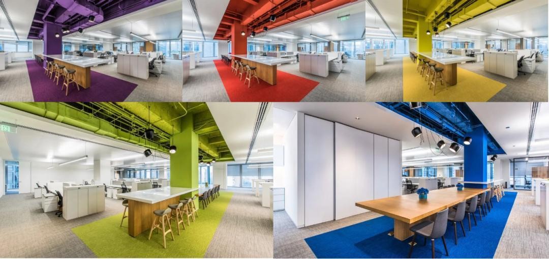在内部,项目也采用了与外部环境异曲同工的设计思路。利用多种色彩的搭配点缀,表现出不同的主题和氛围。