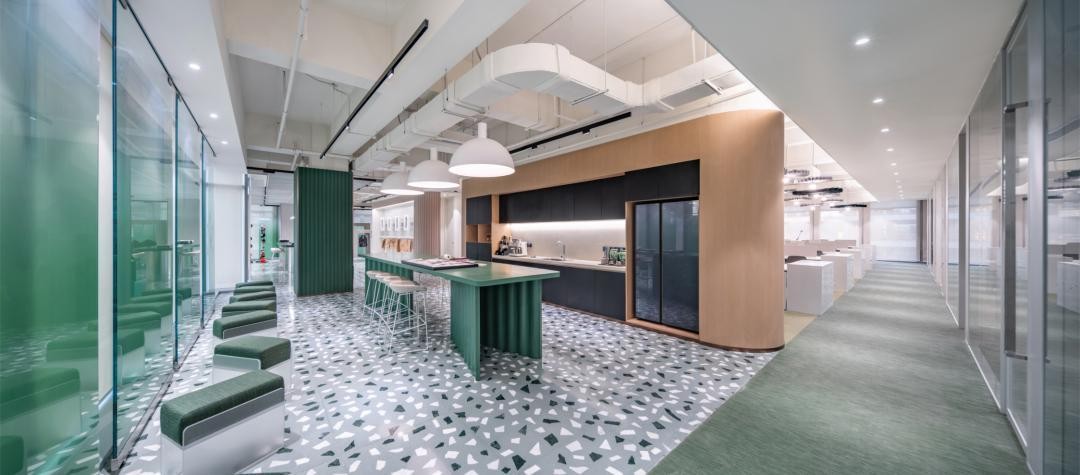 而诸如此类的设计,在中骏其他项目上均有所体现,以上海 中骏·天悦**为例,其携手**知名设计事务所凯达环球,以“叠石绿竹”的设计语汇,精雕细琢空间,让员工身心舒适的同时,也激发了工作活力。
