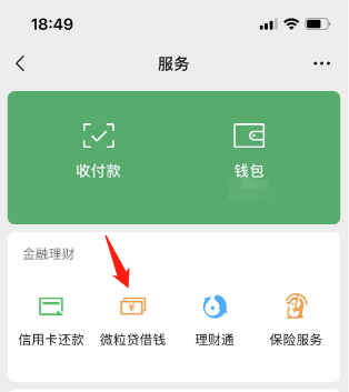 微粒贷是微众银行小额信贷产品,纯线上操作,不需要担保和抵押,也不用提交**纸质材料。开通微粒贷,通过“微信服务”或者手Q钱包里的官方入口(如下图),点击“微粒贷借钱”,根据手机界面提示进行操作即可。借款流程也很简单方便,微粒贷用户只需完成“借钱—输入借款金额—设置还款期数—选择收款银行卡—身份验证”这几个步骤,就可以啦。不过如果以前没用过,**次用的时候需要先获取额度。