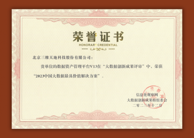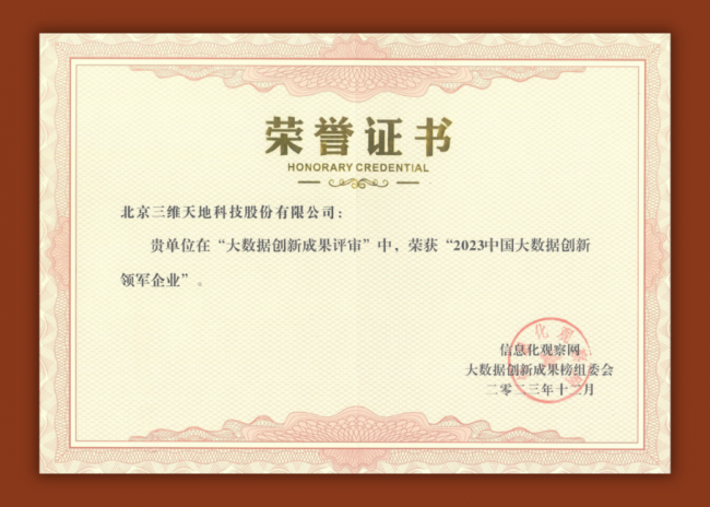 点亮数据新价值丨三维天地荣获2023中国大数据创新领军企业