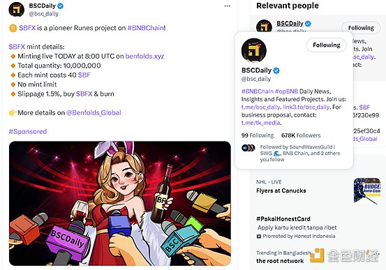 (币安日报对$BFX 符文的报道 https://twitter.com/bsc_daily/status/1740586919216742896 )