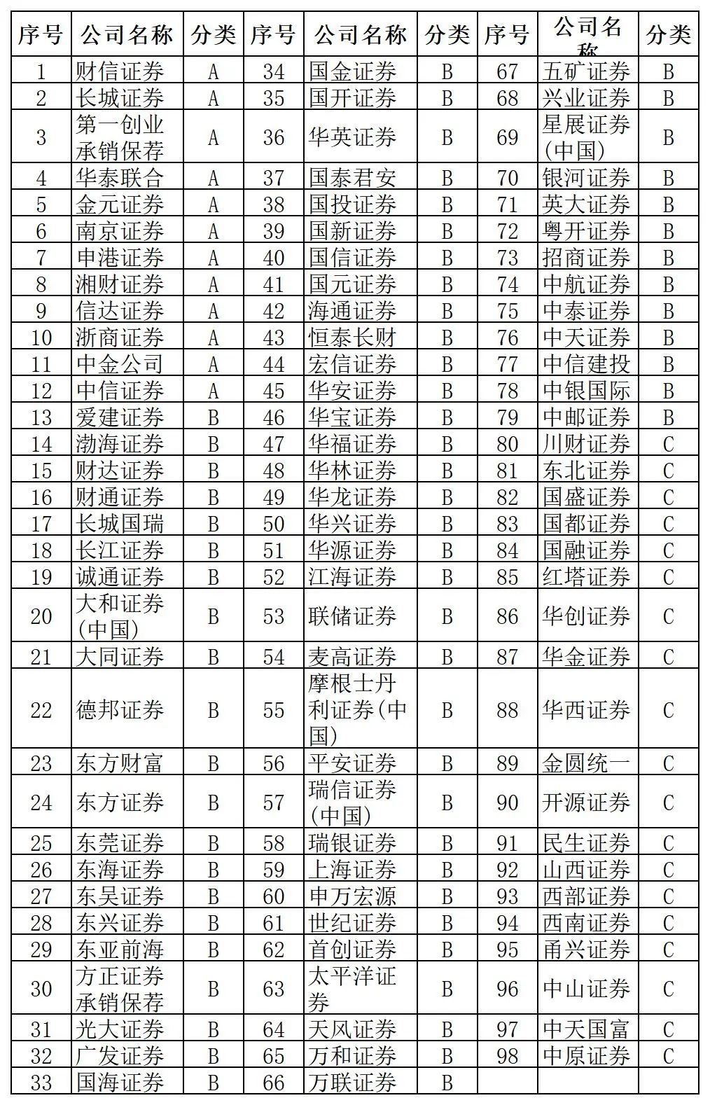本次评价对象包括2022年1月1日至12月31日开展股票保荐、债券承销、并购重组财务顾问和**股转公司(北交所)相关投行业务的98家证券公司,仅开展持续督导业务的证券公司未纳入评价范围。根据《证券公司投行业务质量评价办法》,评价结果分为A、B、C三类,本次评价结果A类12家、B类67家、C类19家。