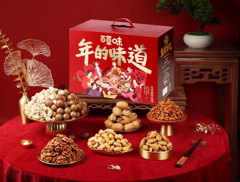 据悉,今年百草味年货礼盒聚焦“品质化”、“健康化”,对年货产品进行了全方位升级,满足消费者春节多元场景需求。