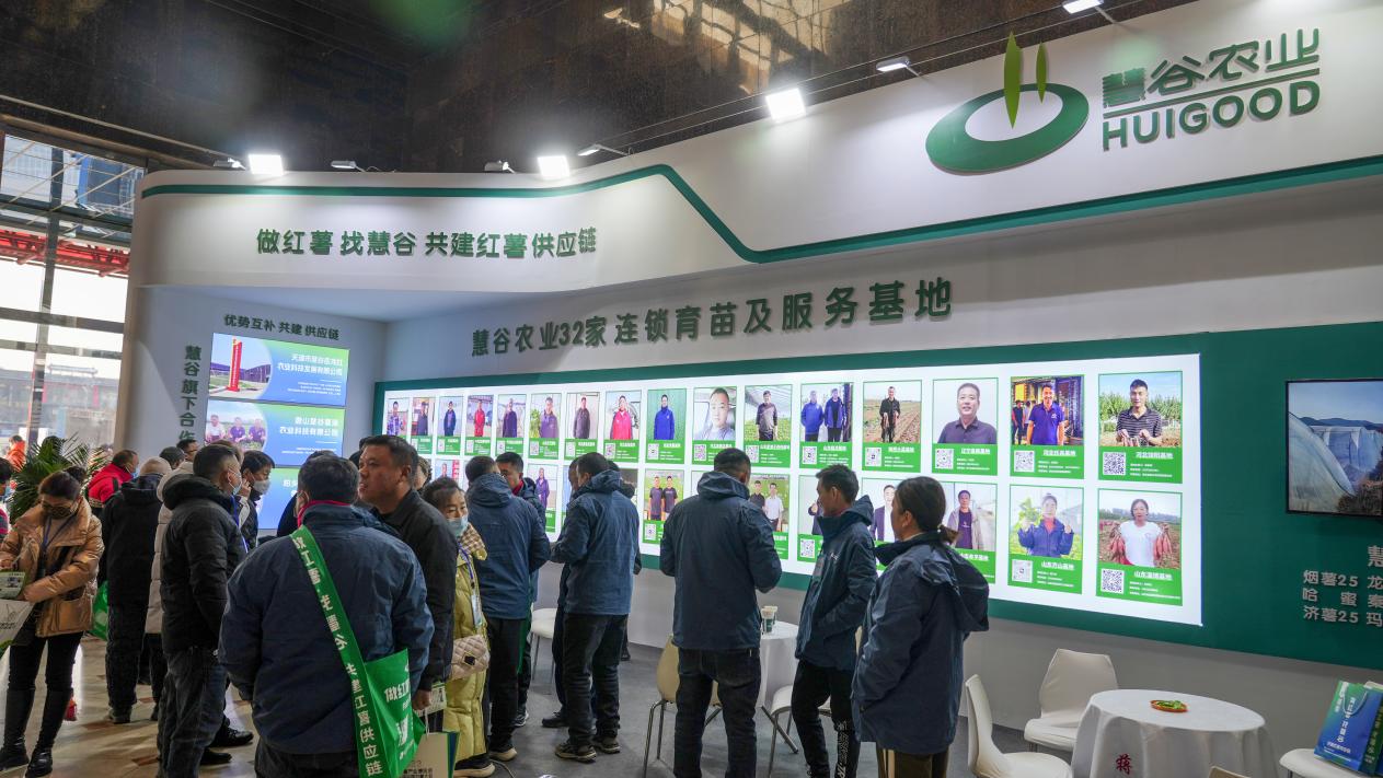一进入博览会A展馆,入场左手边便是慧谷农业的T1展位,“做红薯 找慧谷 共建红薯供应链”的主题**引人注目,展位上32家慧谷连锁育苗及服务基地依次排列,3家合作供应链公司集体亮相,充分彰显了慧谷农业共建供应链的实力与决心。