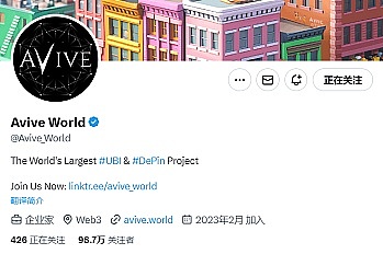 Avive World是一个去**的社交平台项目,目前推特关注人数为98.7万,官方介绍其用户来自130多个**和20,000多个城市,号称是世界上**的**持有者社区。Avive World的愿景是致力于建立一个自由、平等、开放的世界。在这个世界,每个人都享有话语权,没有特权人士垄断,没有社会地位差别,也没有社会贫富差距,倡导权力下放、公平和自由。Avive World**独特之处在于创建了 一套计算不同用户收益的规则,这套规则综合考虑了用户的网络影响力、真实世界地理位置以及所持有资产的因素,以此来达到和维持所谓的自由、平等、开放的目的,这套机制称为网络共识证明(Proof of Networking,PON)。