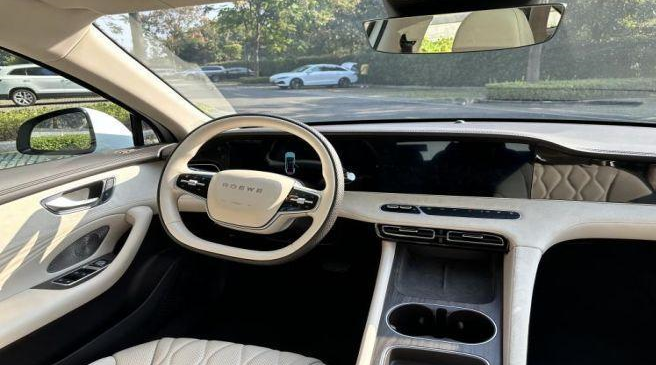 值得一提的是,这次我还试驾到了荣威D7的EV版本,这台EV版本的内饰是浅色,看着会更加清新一些,我个人比较喜欢这套浅色的设计风格。