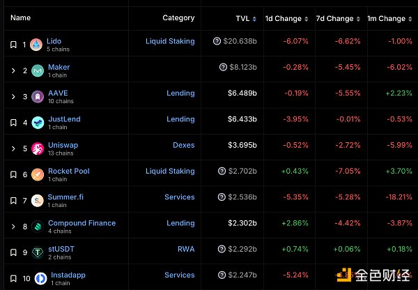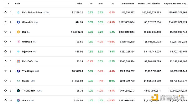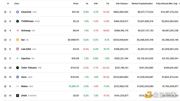 DeFi总市值及前十** 数据来源:coingecko