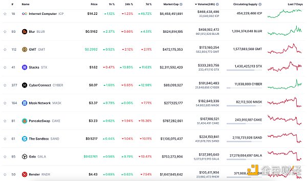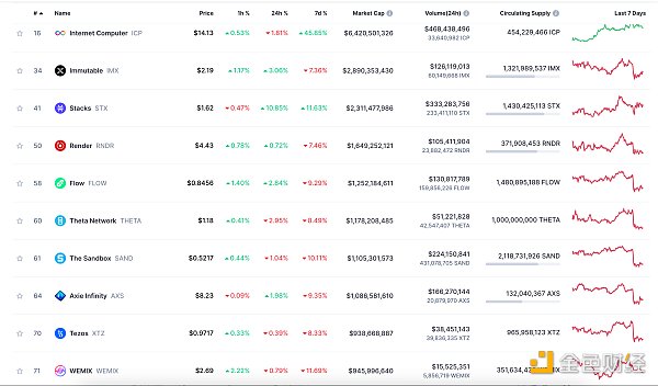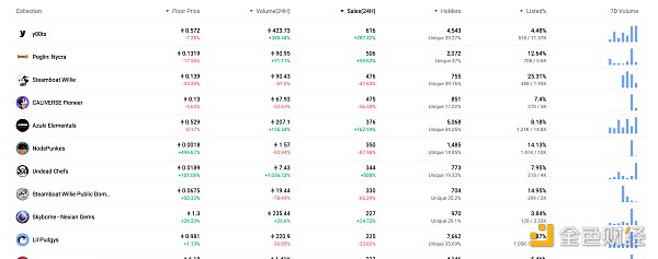 24小时NFT交易量、交易量前十项目 数据来源:Coinmarketcap