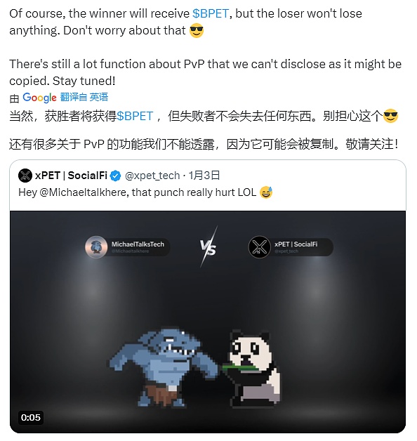 对于胜负的奖励和惩罚,官推也给出了答复,那就是获胜会得到Bpet,失败者不会失去**东西,至于失败者能得到什么,官推并没有说,说是怕被抄袭哈哈,那就让我们拭目以待吧。