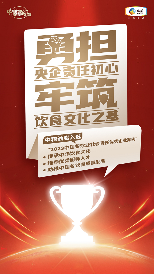 在2024年1月10日召开的**餐饮业社会责任大会上,业内领军企业及**级人物齐聚,共同探讨了餐饮作为刚需行业,以及不断增速升级的产业,在“性价比”时代,应如何找到与环境、社会和自身发展 “和谐共生” 的可持续发展新路径、新价值。在大会 “**餐饮业社会责任**案例” 的评选中,中粮油脂凭借在行业**与专业坚守的突出表现以及身为央企在履行社会责任方面的积极努力与探索,备受行业瞩目。