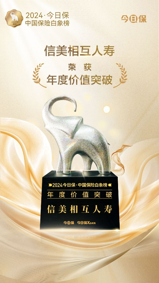 信美相互人寿入选“今日保·中国保险白象榜”,荣获“年度价值突破奖”