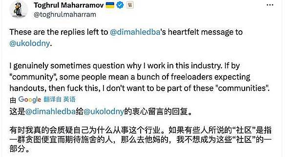 事情的起因是,Scroll的技术在推特上怒喷其社区用户,他狭隘的认为加密社区的用户都是一帮“羊毛党”,是“贪图便宜等待施舍”的人。这个论调基本可以代表Scroll从上到下,对社区用户利益的漠视与否定,如果是普通的加密项目也就算了,可是Scroll的来头可不简单。
