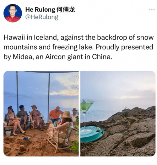 美的“冰岛夏威夷“体验仓成功吸引了众多外媒的目光。这个独特的体验仓,借由冰岛雪山和冰湖的自然美景,巧妙营造出一个夏威夷风情的热带胜地。**驻冰岛大使莅临参观,并发文社交媒体宣传,赞扬美的这一创新之举。