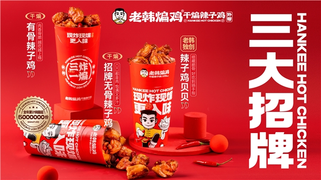 同时,老韩煸鸡还在不断升级迭代,致力于持续打造既有文化底蕴又新潮好玩的中式炸鸡品牌公众形象,推陈出新,从表及里,实现千城万店的规模,打造中式炸鸡**品牌的发展目标。