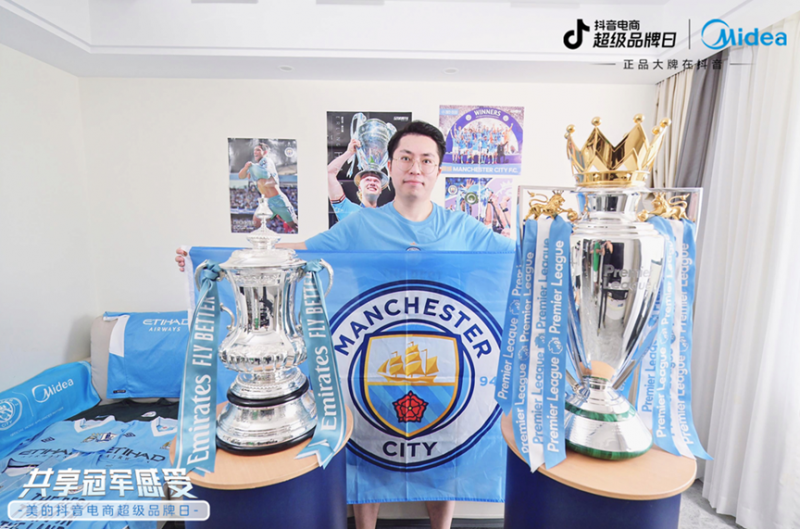 除了超级会员日,2023年9月,美的还联手抖音电商超级品牌日,共同推出了「曼城三冠王奖杯**巡游」活动,将球迷梦寐以求的**时刻搬进现实。