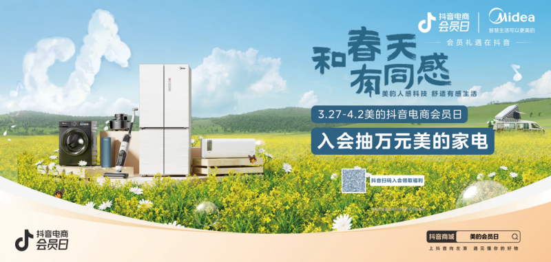 2023年3月,美的联合抖音电商会员日整合站内超300个集团账号,前期打造统一的会员体系,让经销商也能同步进行会员运营。