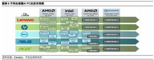 随着英特尔等厂商陆续发布具备 AI 功能的处理器之后,各品牌整机厂商纷纷配合推出相关 AI PC 产品,预计 2024 年将会有更多 AI PC 产品进入市场,有望成为 AI PC 元年。