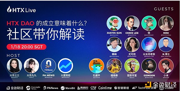 1月18日,火币HTX全球顾问委员会成员孙宇晨、亚洲货币香港**高管Chris Lee、 亦来云BeL2联合创始人韩峰、Nano Labs创始人孔剑平等数位行业重磅嘉宾以及PANews、火星财经等行业媒体做客火币HTX推特Space。本次Space以“HTX DAO的成立意味着什么”为题,**解读DAO、HTX DAO的财富密码、以及HTX DAO带来的全新加密叙事。