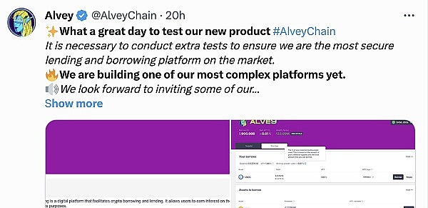 来自AlveyChain官方推特**消息,其改版后的借贷平台已经完成开发,已经进入**测试阶段,即将正式对外开放。