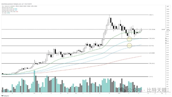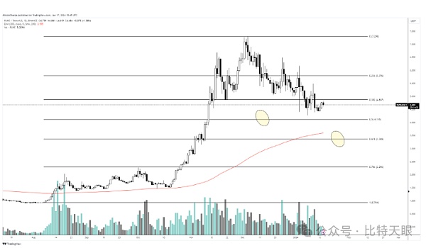 继ORDI之后,请大家关注去**化跨链流动性协议THORChain的RUNE,他表示,如果下跌趋势持续下去,那么RUNE日线图上需要关注的关键斐波那契回撤位是(50%)和(61.8%)。