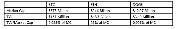 从数据对比来看,基于UTXO模型的BTC以及DOGE链在生态发展上有上千倍的空间。