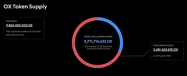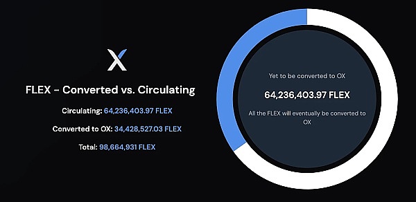 总供应量 = ($FLEX 总供应量 - 已销毁的$FLEX数量)* 100。以目前数据为例,9.86亿$OX的供应量是基于1亿$FLEX减去约140万$FLEX的销毁量,再乘以100计算得出。