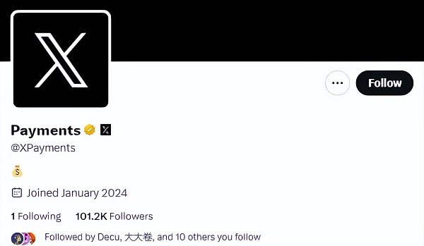 周日,一个名为X Payments的账号在推特设立,尽管该账号目前并没有透露**讯息,不过根据X平台的规则,拥有金色标记表明该帐号确实为官方所注册。